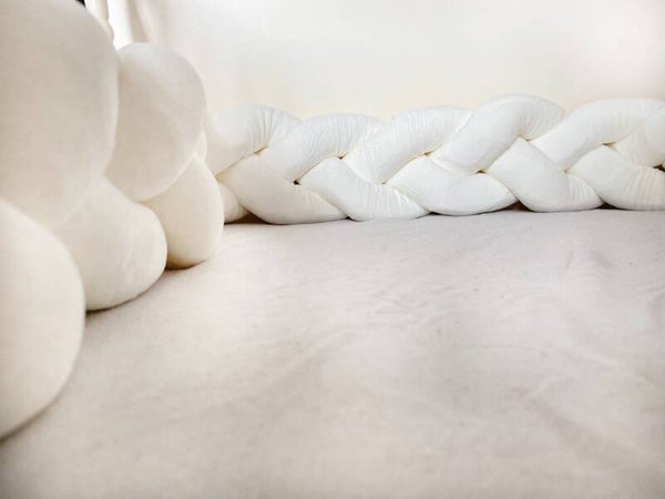 Gevlochten Bedbumper / Bedomrander Treccia - 3 meter - Donker beige, Wit, Grijs of licht beige